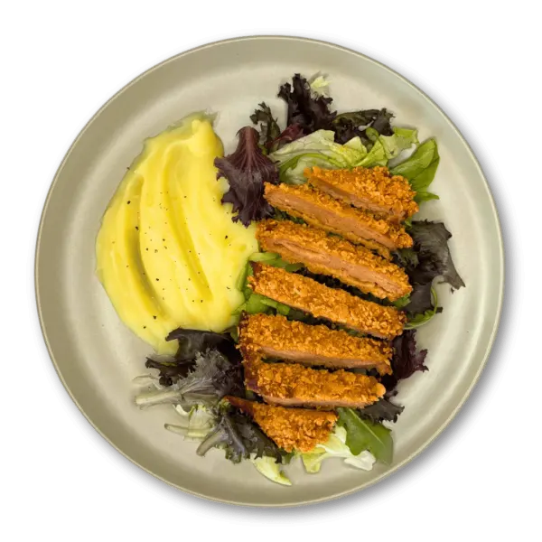 - Ready-to-cook formats (hydrated, breaded, and flavoured): such as our Golden Milanesa, a pre-formulated plant-based fillet that only requires frying—perfect for prepared meals, collective catering, and foodservice solutions.